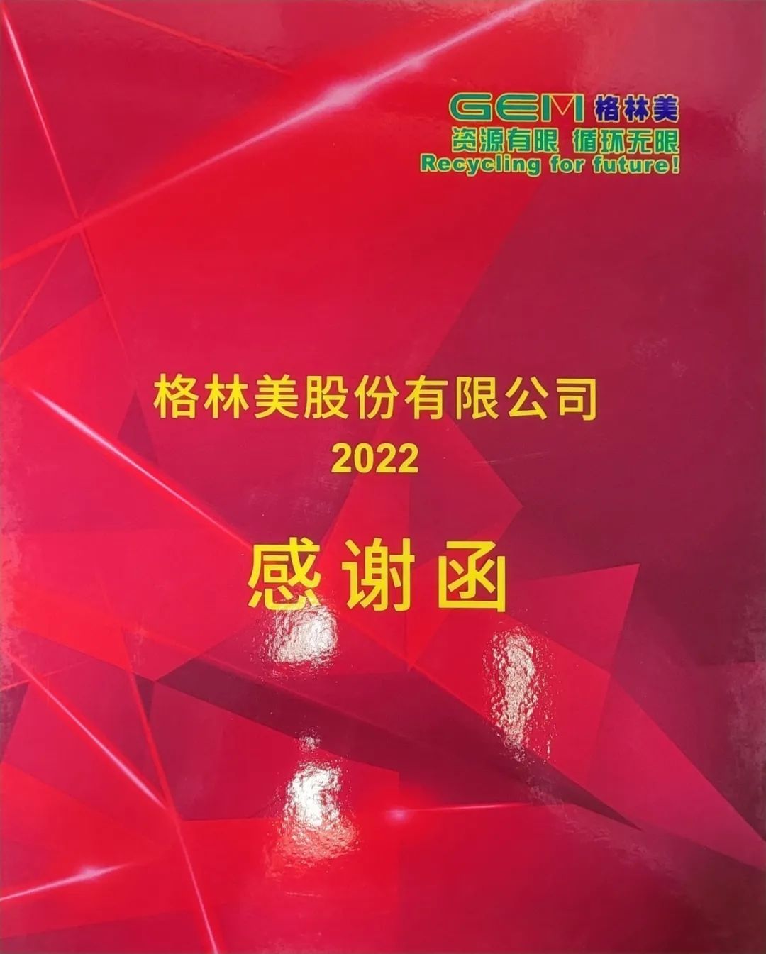 重泵公司收到格林美股份董事長簽發感謝函