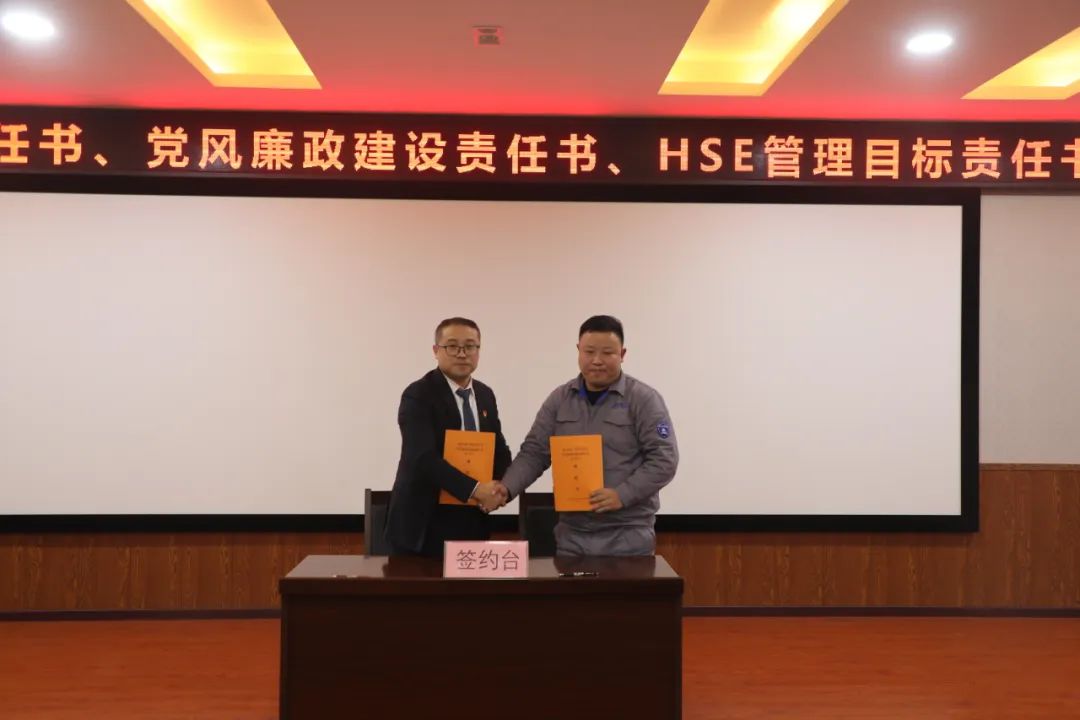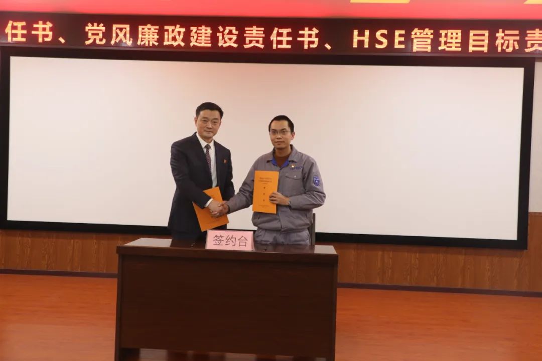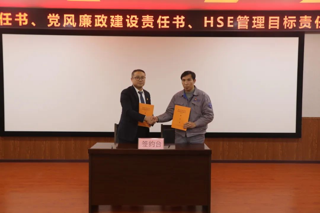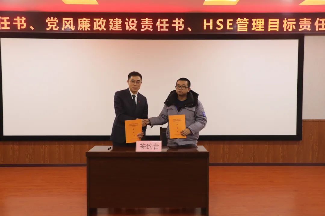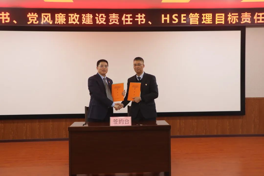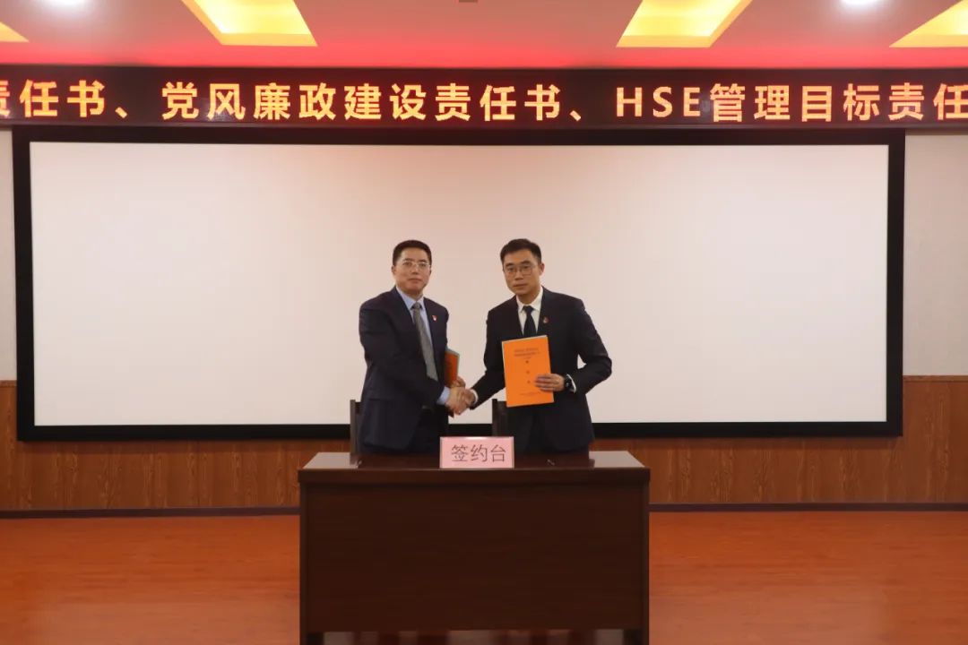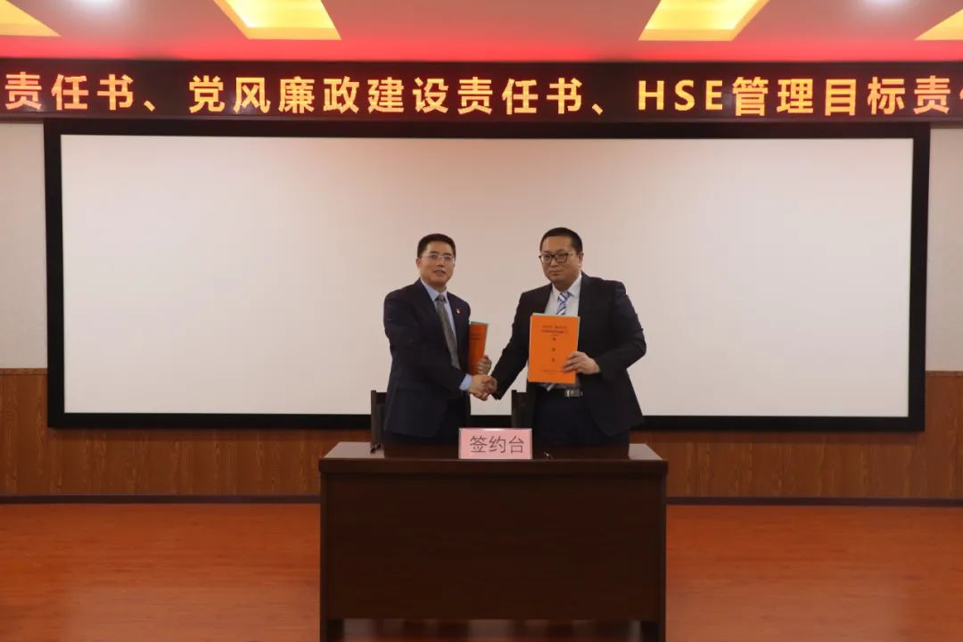 分管領導與中層干部簽訂《2023年目標責任書》《2023年黨風廉政建設責任書》和《HSE管理目標責任書》