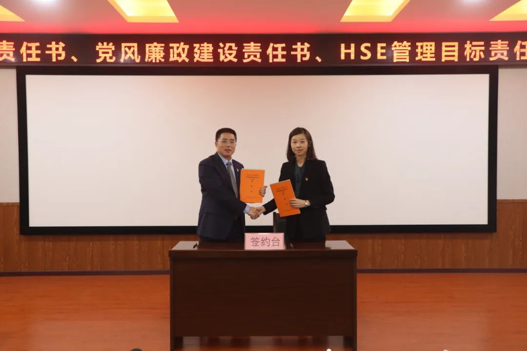 會上,公司主要領導與分管領導、分管領導與中層干部簽訂了《2023年目標責任書》《2023年黨風廉政建設責任書》和《HSE管理目標責任書》。此次會議的召開,為公司推進2023年工作良好開局、落實新修訂的“十四五”規劃凝聚了共識,指明了方向。(黨群紀檢審計部)
