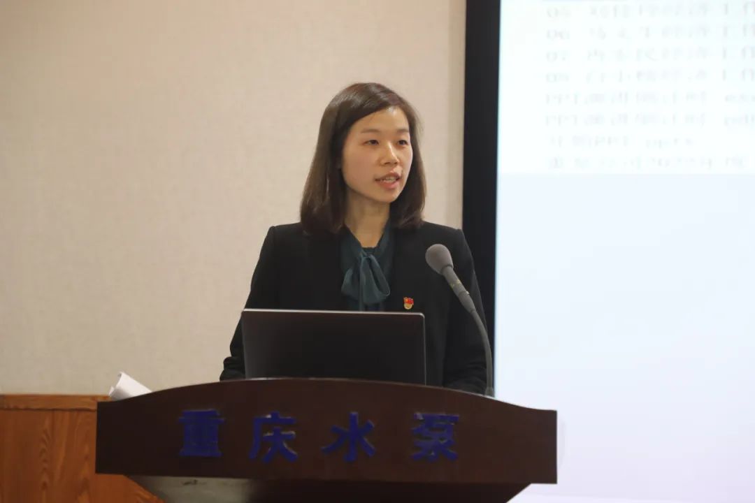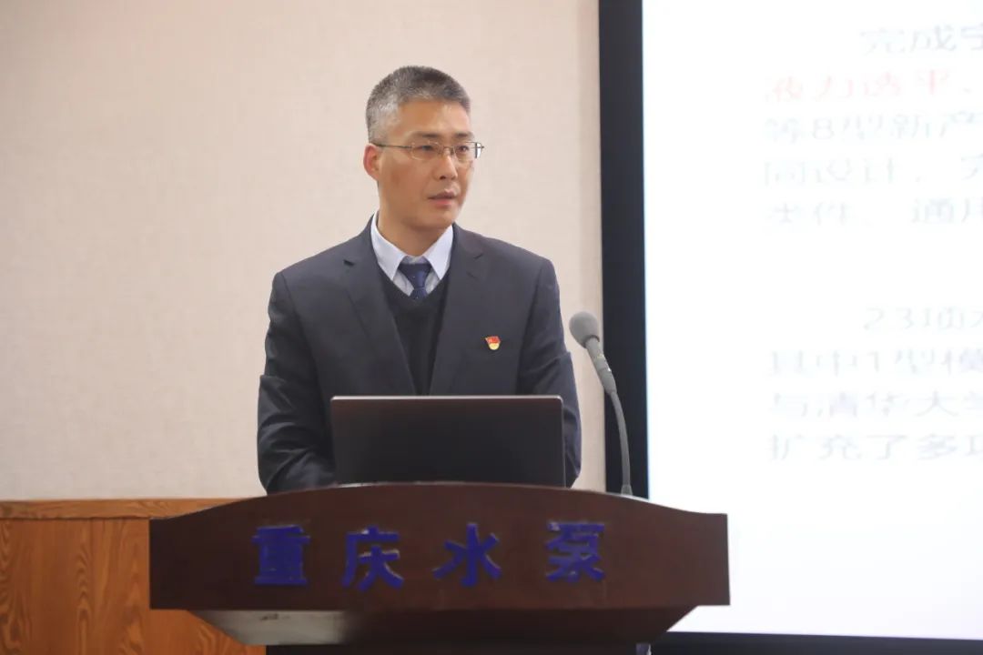 公司黨委副書記、紀委書記、工會主席李衛作了《深學黨的二十大精神,全面從嚴治黨,奮力書寫重泵公司高質量發展新篇章》的黨委工作報告,副總經理潘志敏作了市場和質量工作報告,副總經理何智奎作了生產運行報告,財務副總監劉佳玲作了財務工作報告,總工程師馬文生作了技術創新工作報告,副總工程師冉宏民、白小榜也分別就分管工作作了專題報告,黨委副書記、總經理張波作了講話。