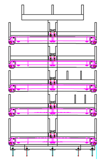 4、層數(shù):豎直并排10層,每層間隔200mm,底部采用滾輪結構,方便出料,不卡阻;