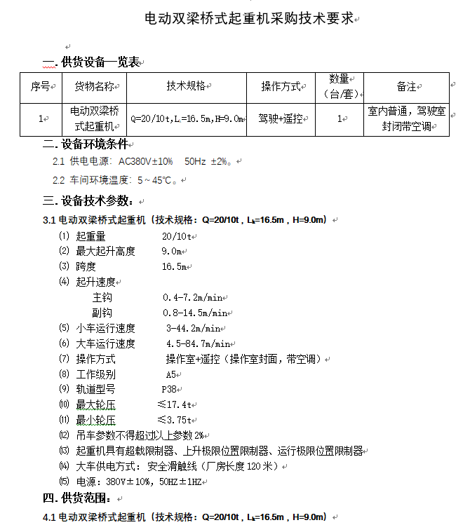 總裝車間裝配線數字化改造項目 電動雙梁橋式起重機 招標公告