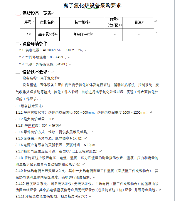 離子氮化爐 第二次招標公告
